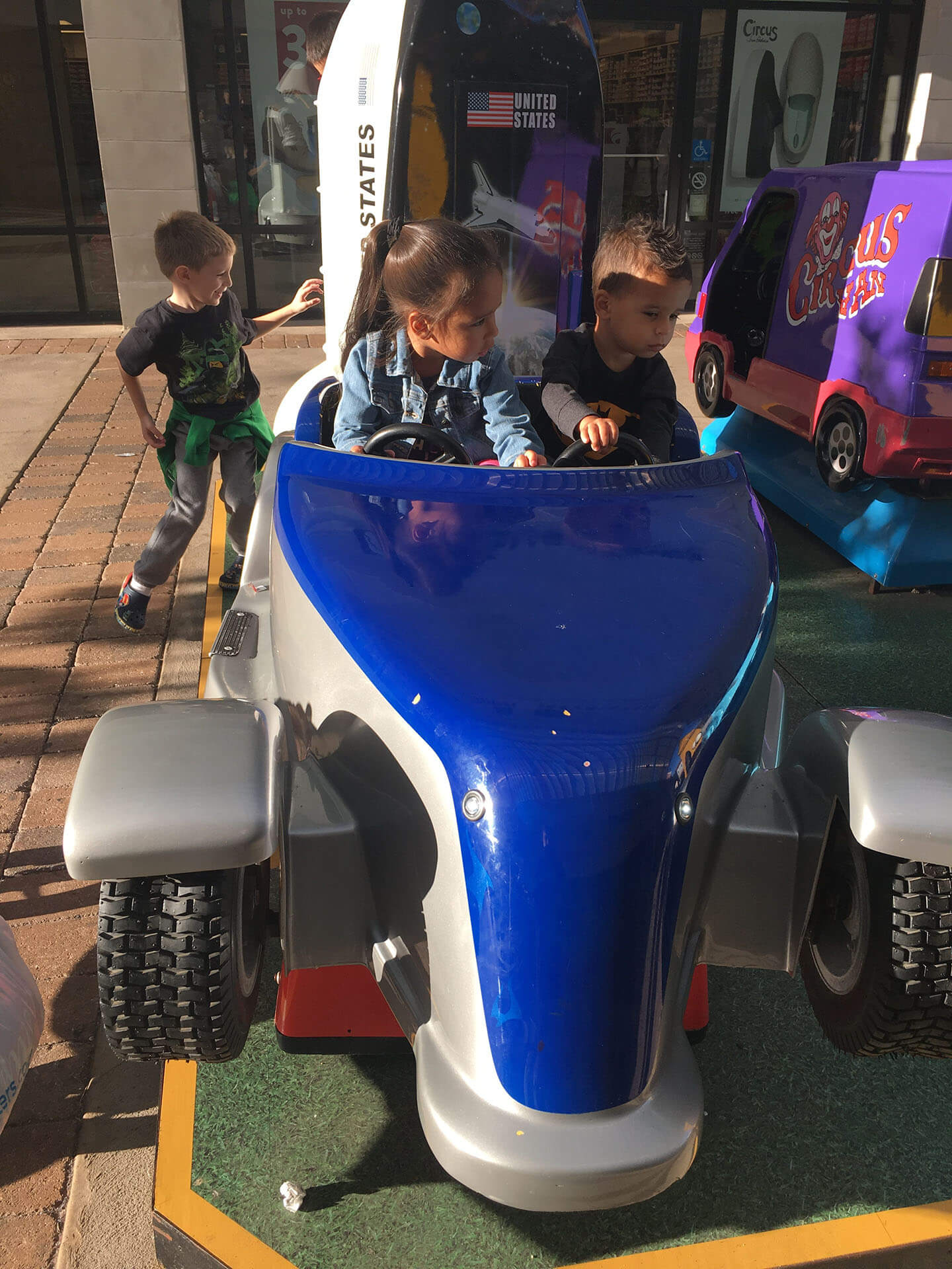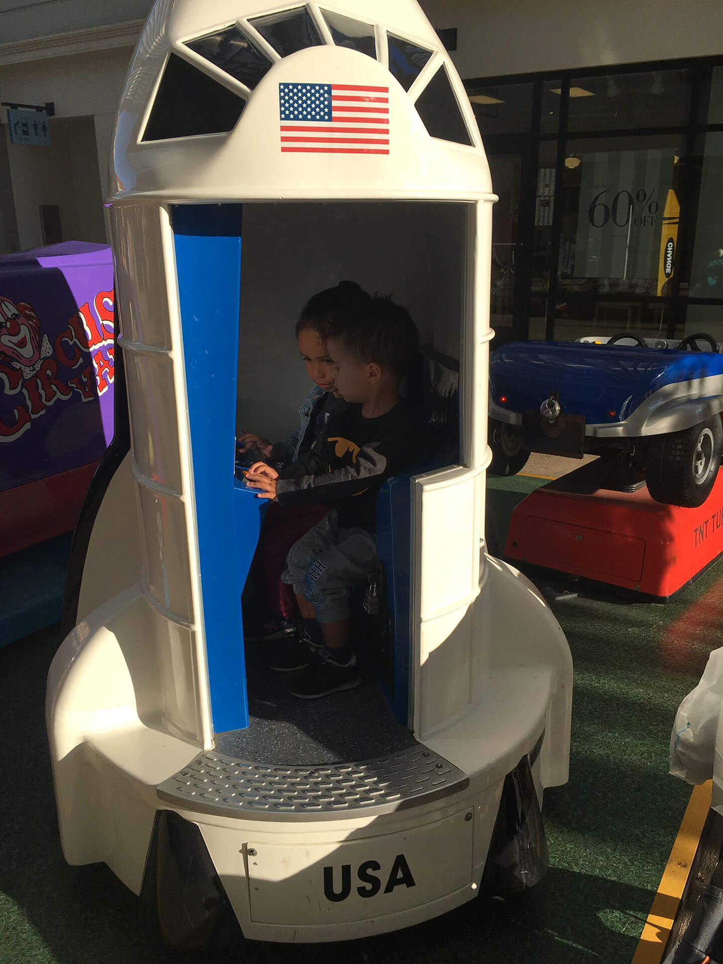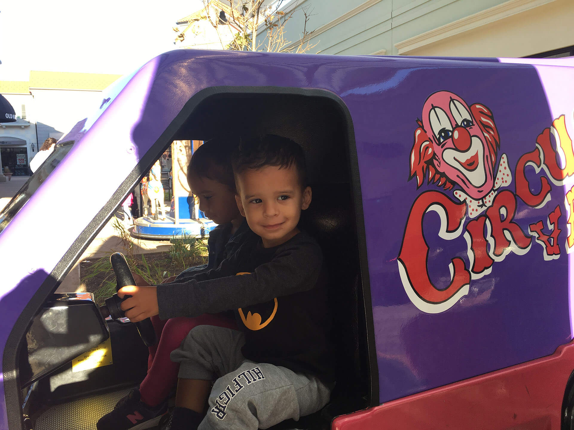 An Afternoon at the Outlet Posted by Daddy on Oct 1, 2017 We needed to get you guys some fall jackets for the cool weather so we took a ride to Deer Park Outlets and went to the Columbia store. While we were there you we entertained you with some Quarter rides.