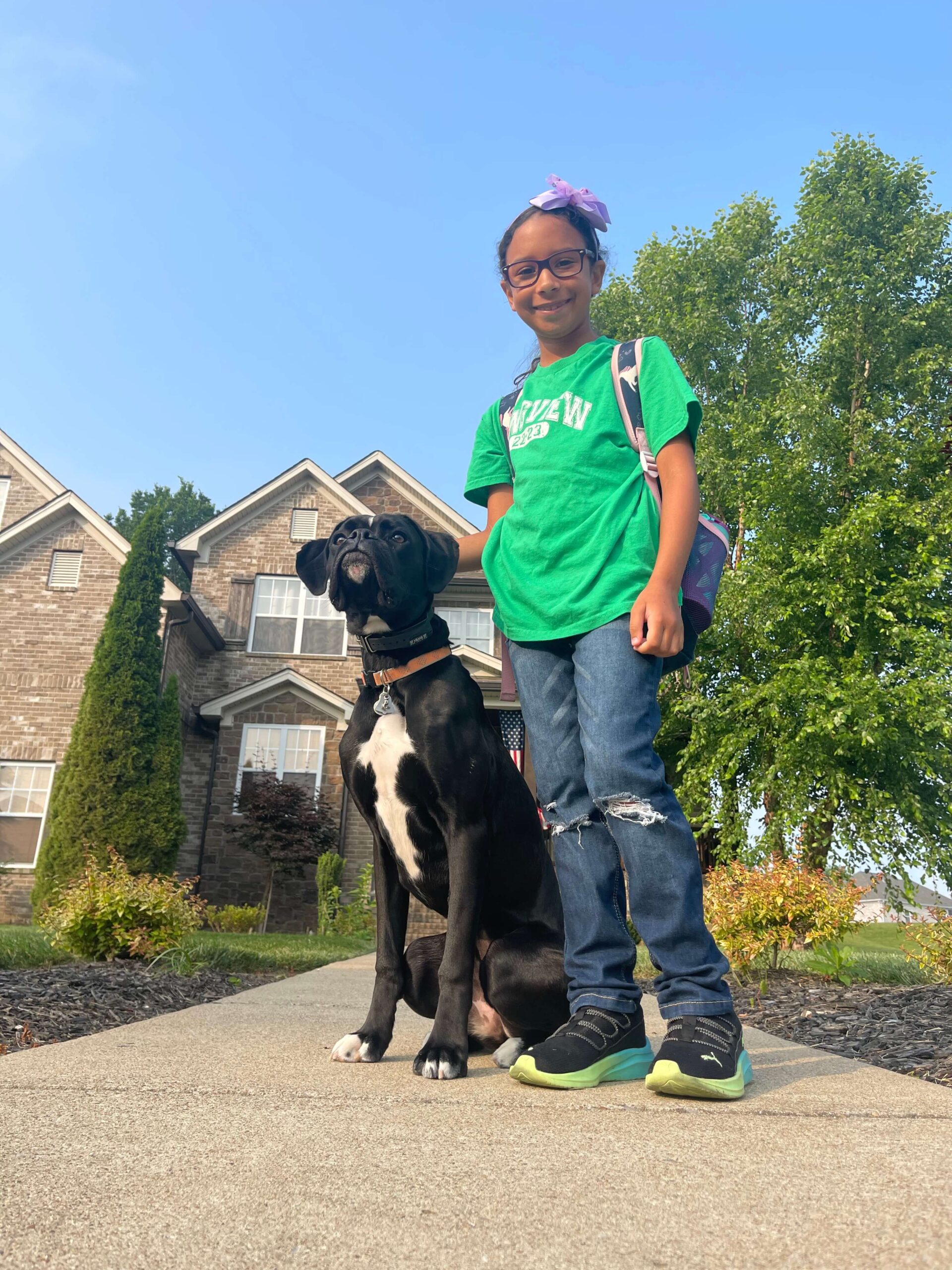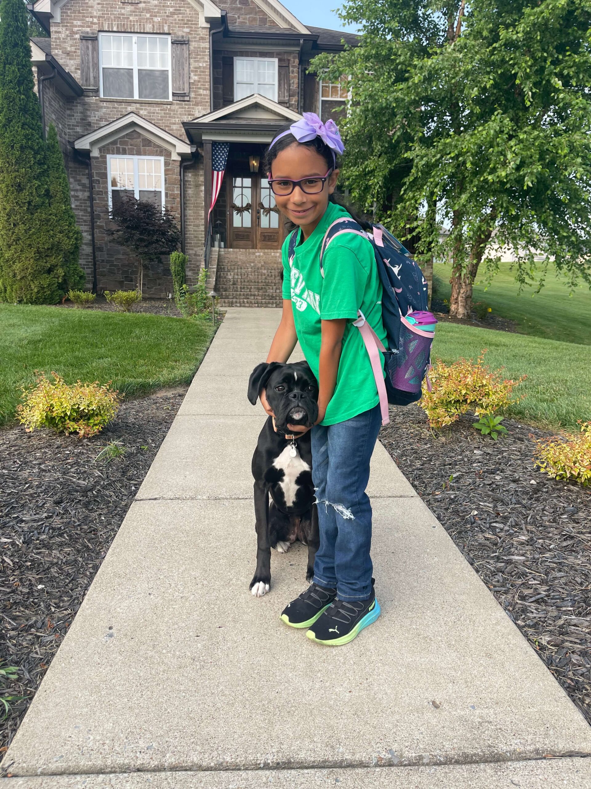 Walking my girls out to the school bus. Anne loves her little stinky baby.