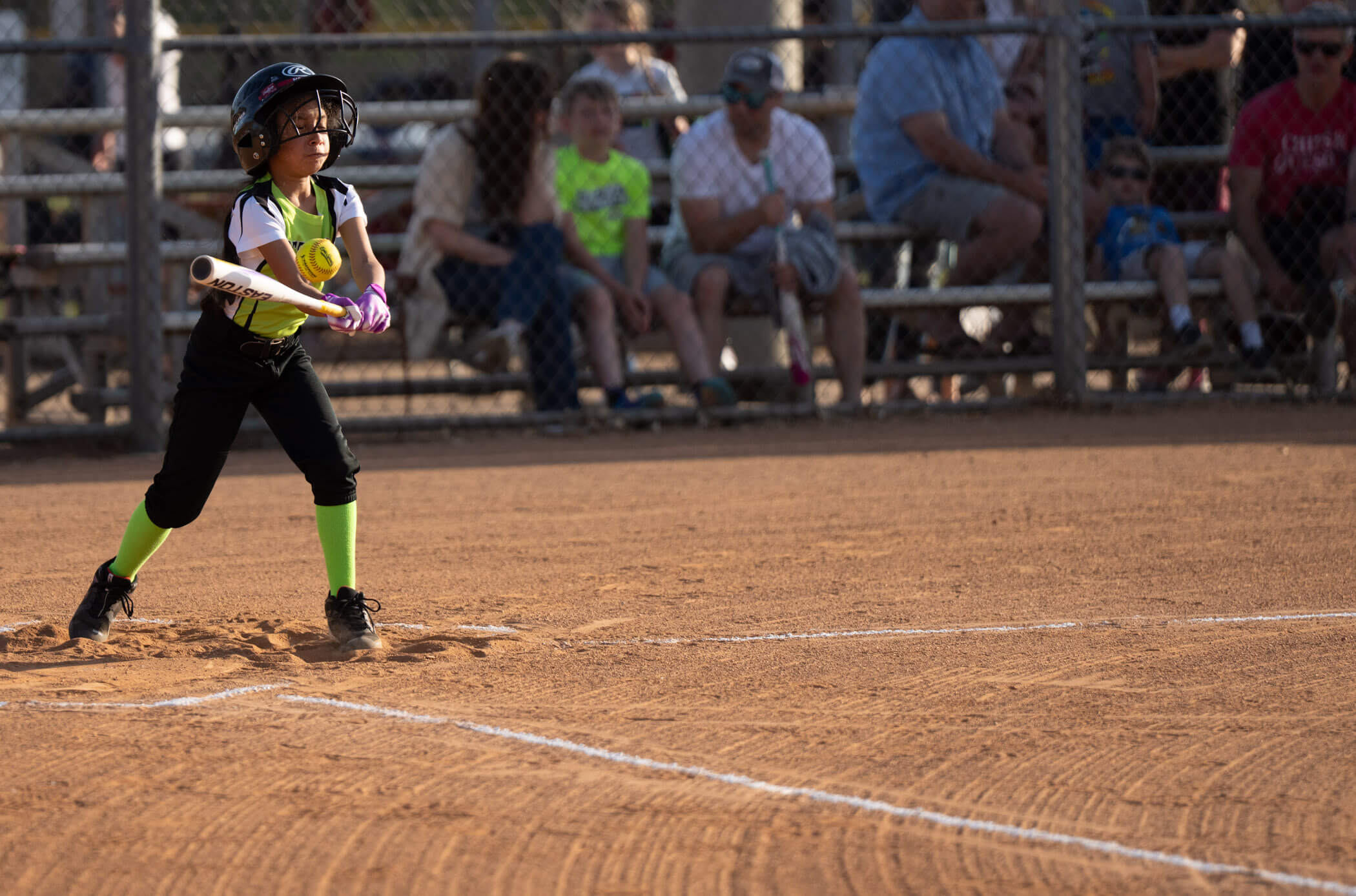 The sun hangs low in the sky, casting a golden glow over the freshly lined softball field. The crisp evening air hums with excitement as my daughter steps up to the plate, gripping her bat with quiet determination.