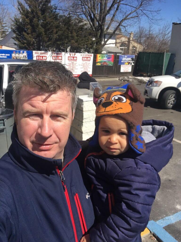 Today is Wednesday so that means Daddy works at night because he takes Annelise to Nursery school. After getting Annelise ready for school and once Tyler saw Anne with her coat on he got all emotional because he knew Annelise was leaving. I kind of felt bad and I know Tyler loves to go outside no matter the type of weather I decided to take him for a ride. Plus, this would give Paula (this was your nanny if your asking) a little afternoon break. The other plan I had after dropping Anne at school was to wash the truck. Daddy hasn’t washed that truck since Feb 04, 2017. I know that because I washed the truck before we left for vacation to Columbus, Ohio. The reason daddy hasn’t washed the truck because after we came back from Ohio, Daddy got really sick. Daddy had appendicitis surgery and was home recovering. And with all the bad weather we have had there was never a good time to wash the truck. So today was a beautiful day and I remember when my dad used to take me to the car wash. I really enjoyed going to the car wash I found it fascinating. So I figured I could share this with you Tyler.