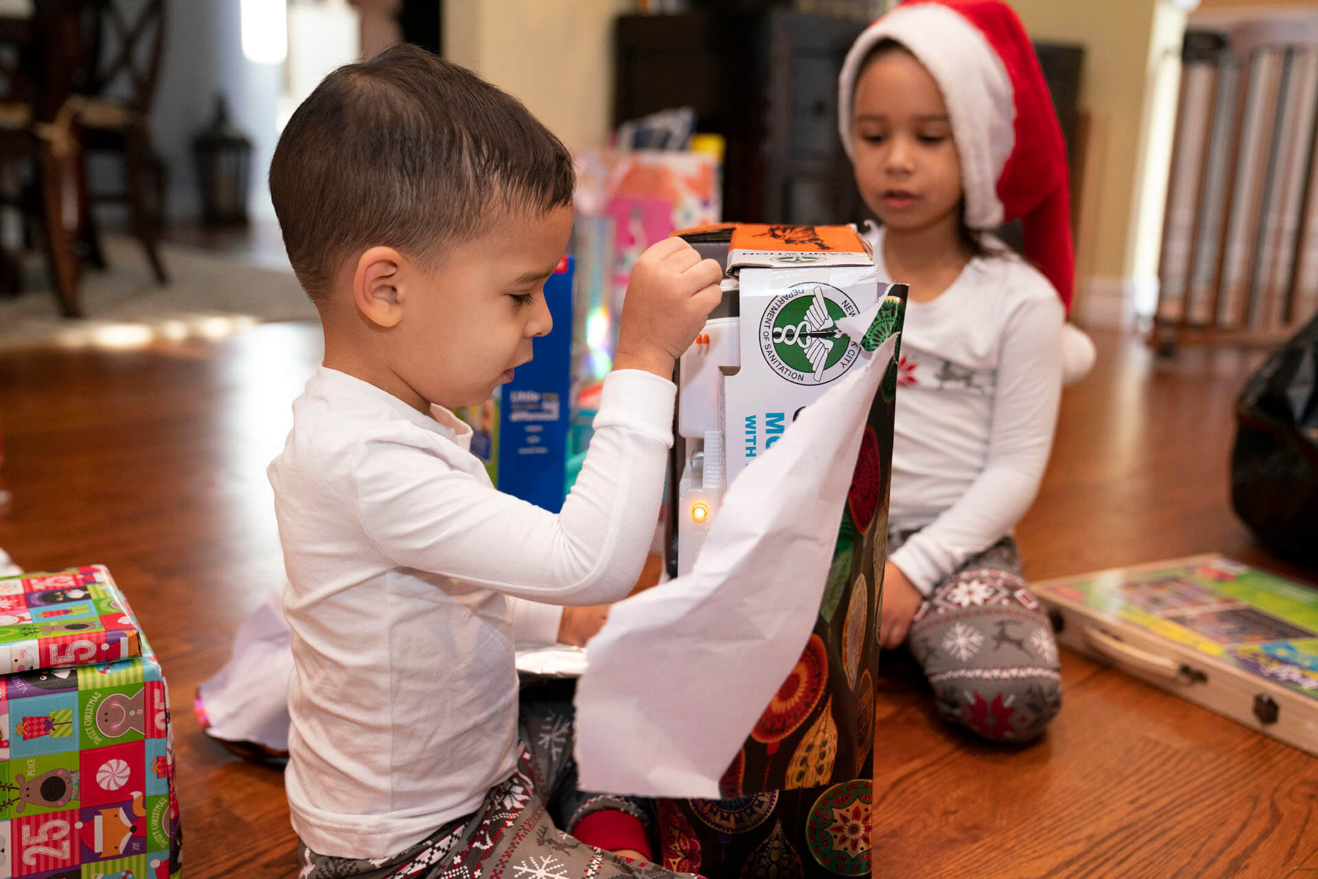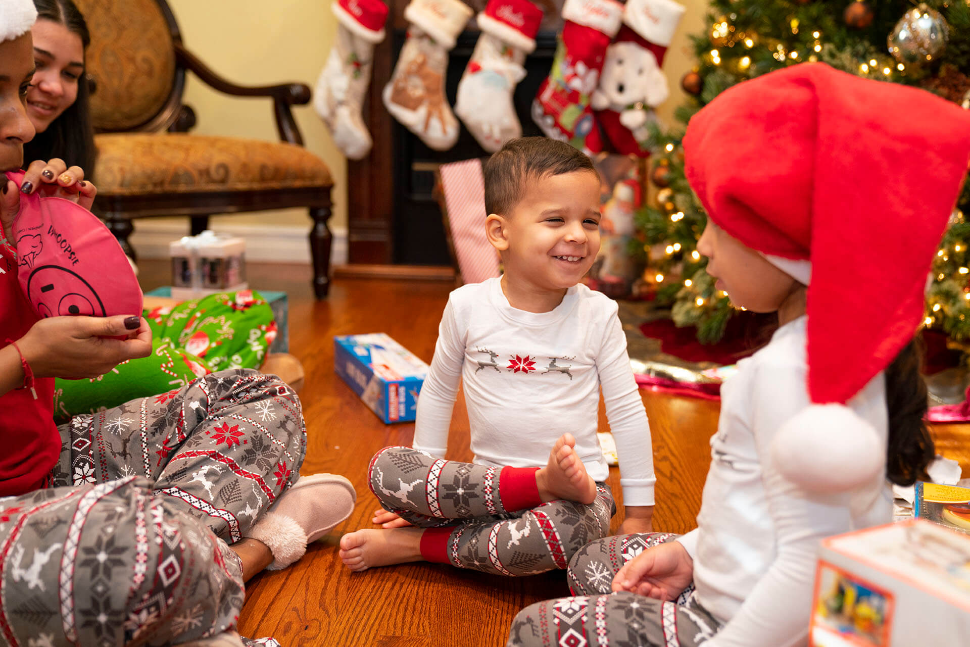 You made it downstairs and see the great tree with its beautiful golden decorations and lit up like a midnight dessert sky with stars. You see the presents laid out under the tree. You ask yourselves “could it be?” “Could it be Santa Clause?” And you both turn to the table because you remembered the milk and cookies. To your surprise, you both look at the half-devoured cookie. Anne points to it and says “Santa was here!”And now your Christmas is complete with joining each other with mommy & daddy with opening the gifts that Santa has left behind.