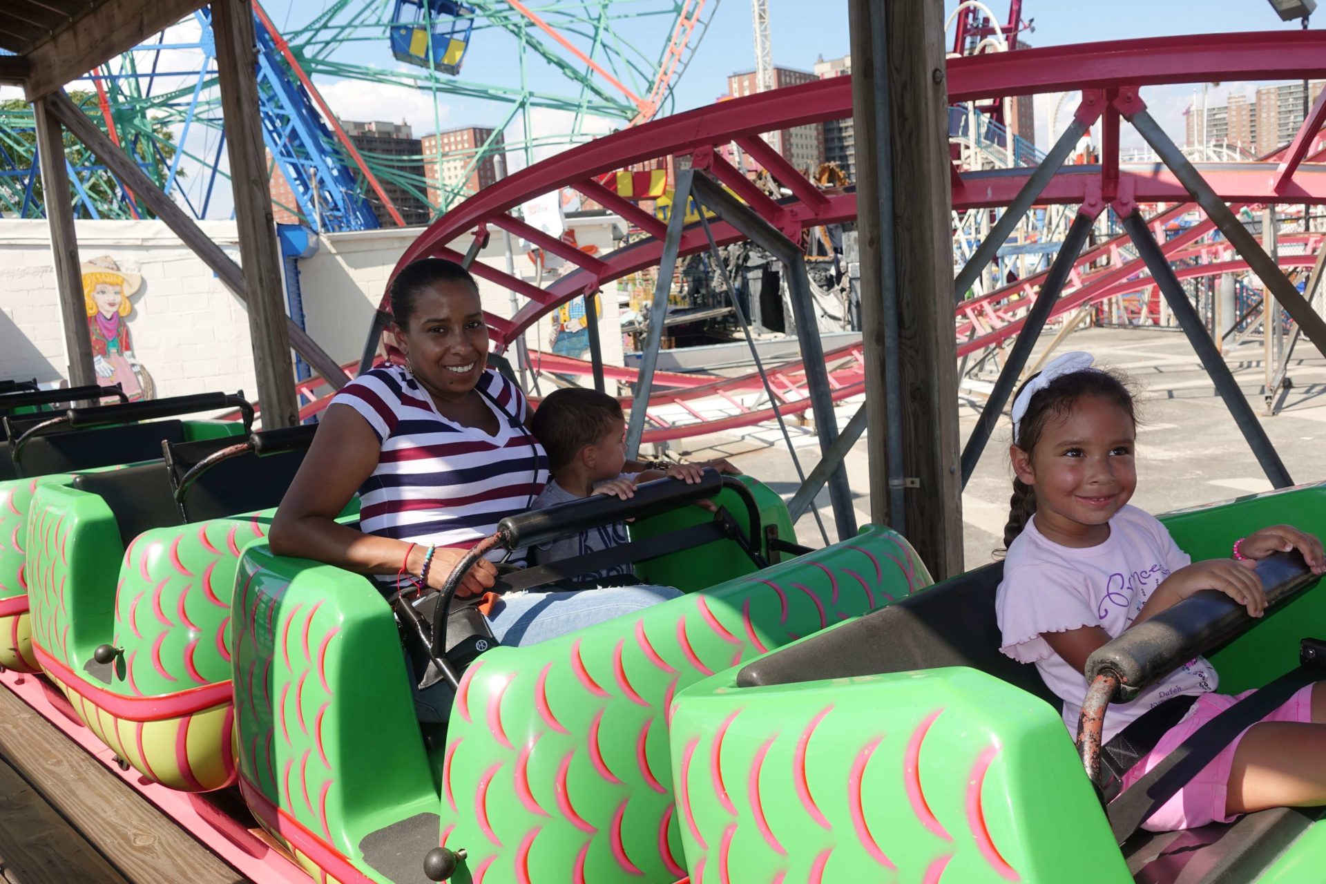 So this trip came to life last month when we were traveling back from Sesame Place in Pennsylvania as we were driving on the Belt Parkway in Brooklyn. As we were driving home, Annelise looks to her right (looking at the Coney Island tower against the sunset lit sky) and yells out “mommy-daddy! I want to go there.” Then Tyler glances through Anne’s window and the next thing we hear “look, mommy, look. Look, daddy, look.” So as we drive by, we tell you that we will make plans and visit Coney Island.
