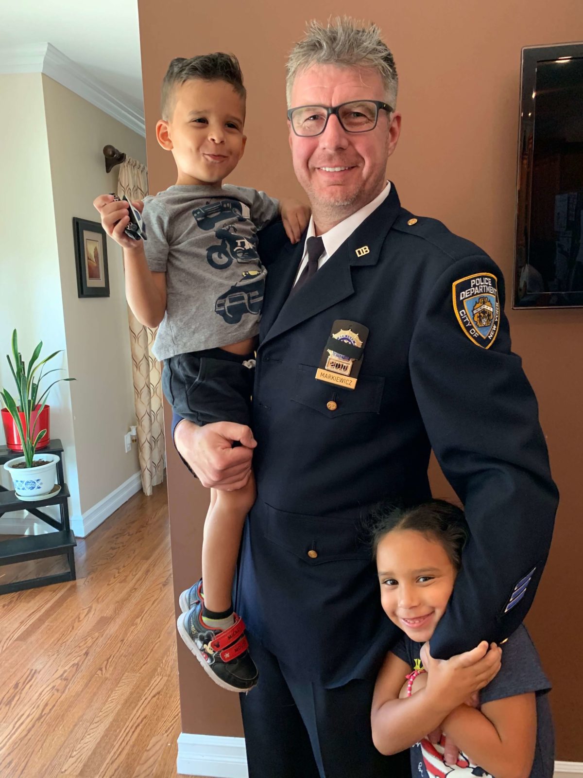 This will be the only time that you guys will see daddy in his police uniform. Unfortunately one of daddy’s friends passed away and the funeral was here on Long Island. After the funeral was over and daddy came home. So this is what daddy looks like as a policeman. I will not be a policeman (Detective) for much longer.