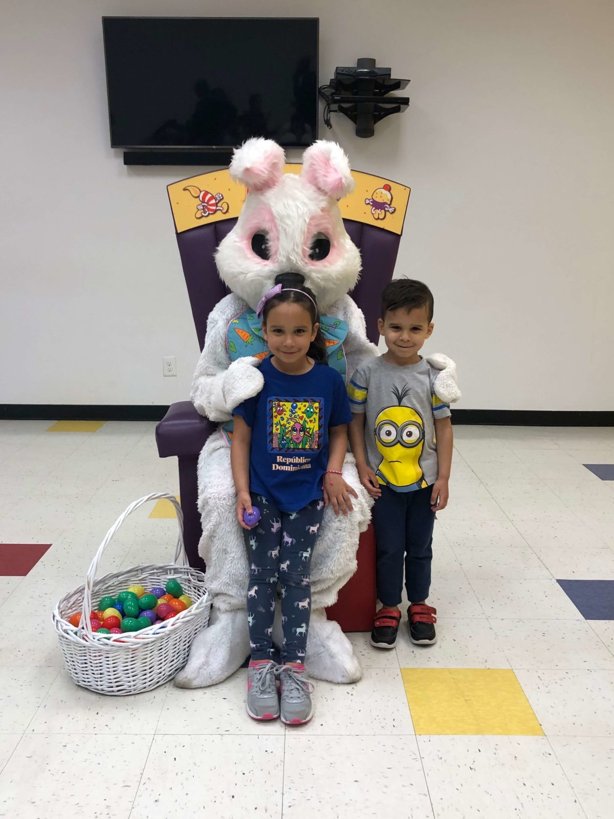 Easter Bunny Surprise Posted by Daddy on Apr 17, 2019 Mara took you to the indoor jump park in Farmingdale and you guys had an Easter surprise. The Easter bunny came to say hello and take a photo with you both.