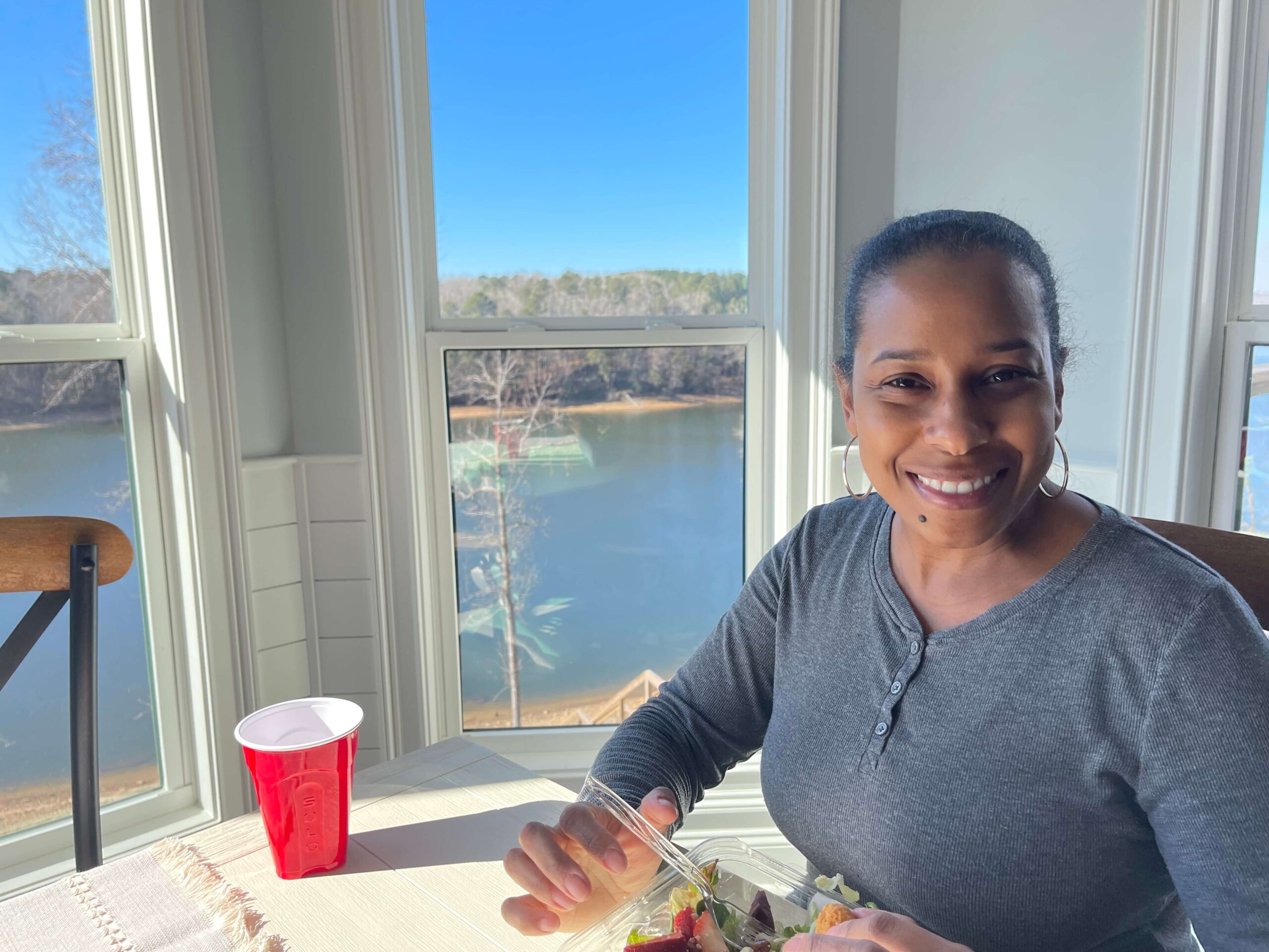 Nothing like some Publix southern fried chicken with some salad overlooking the lake from our dining room table. LIFE IS GOOD