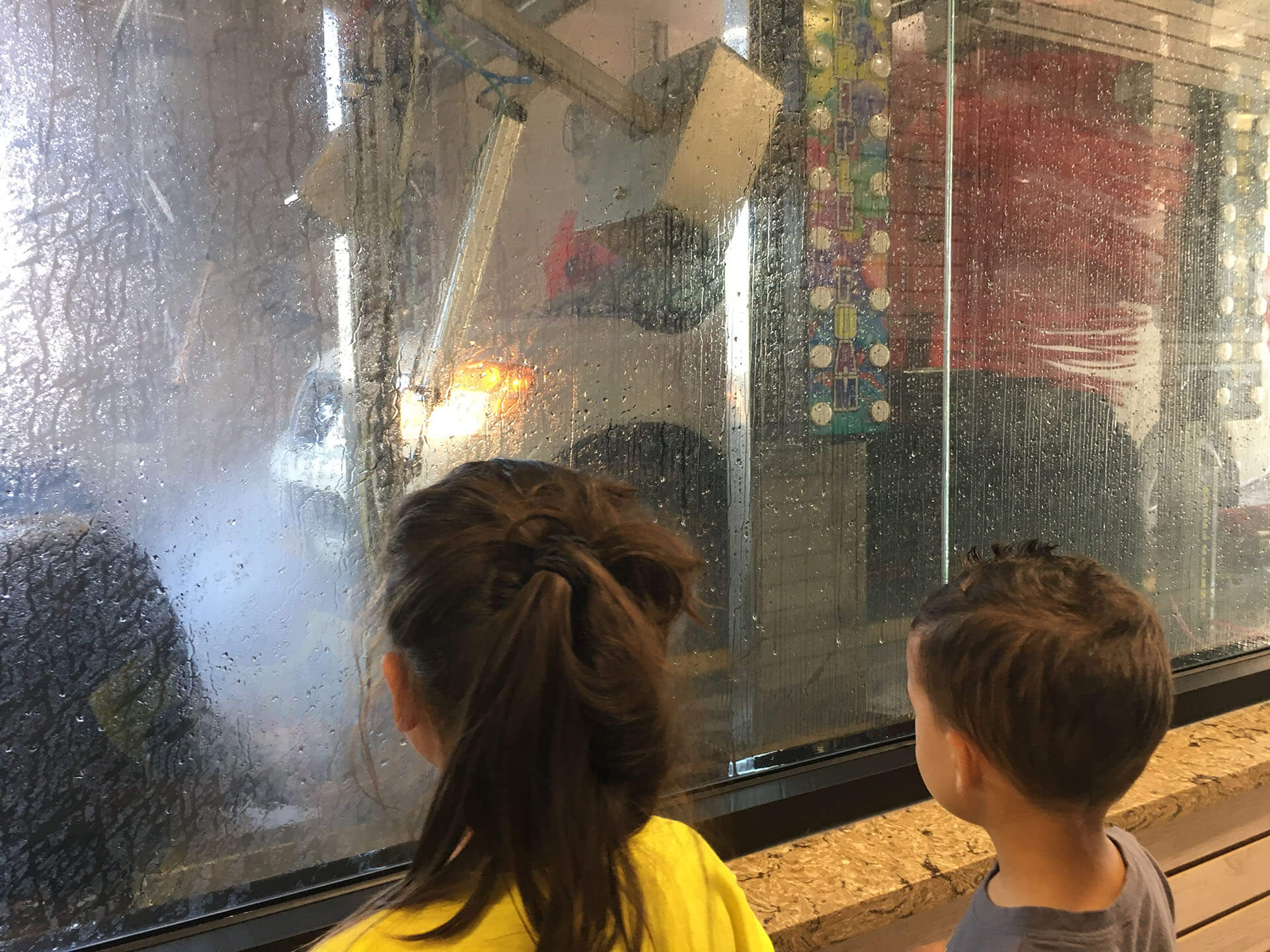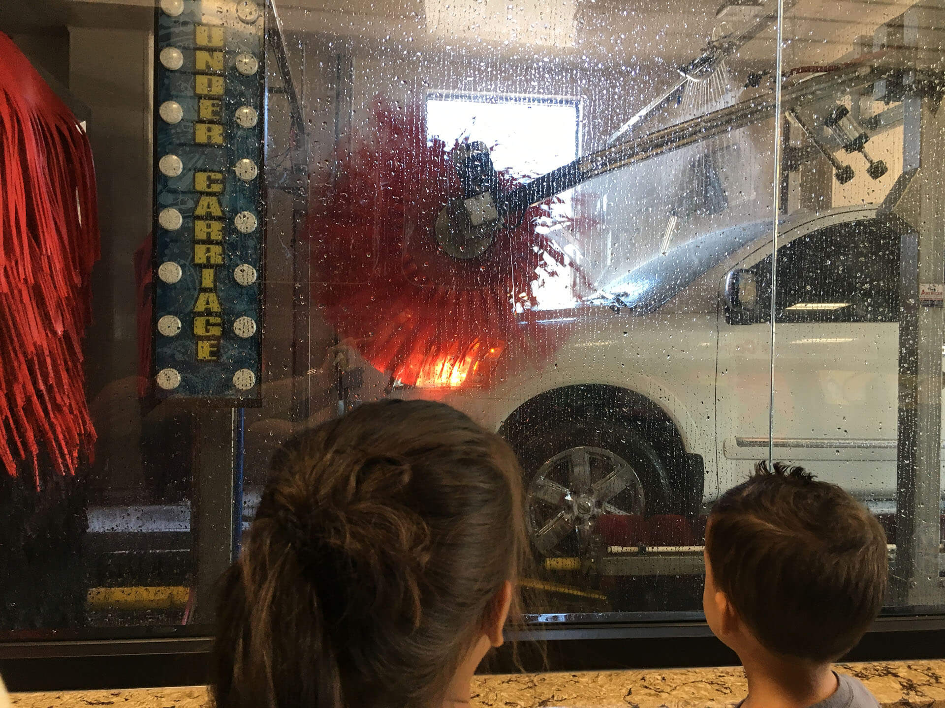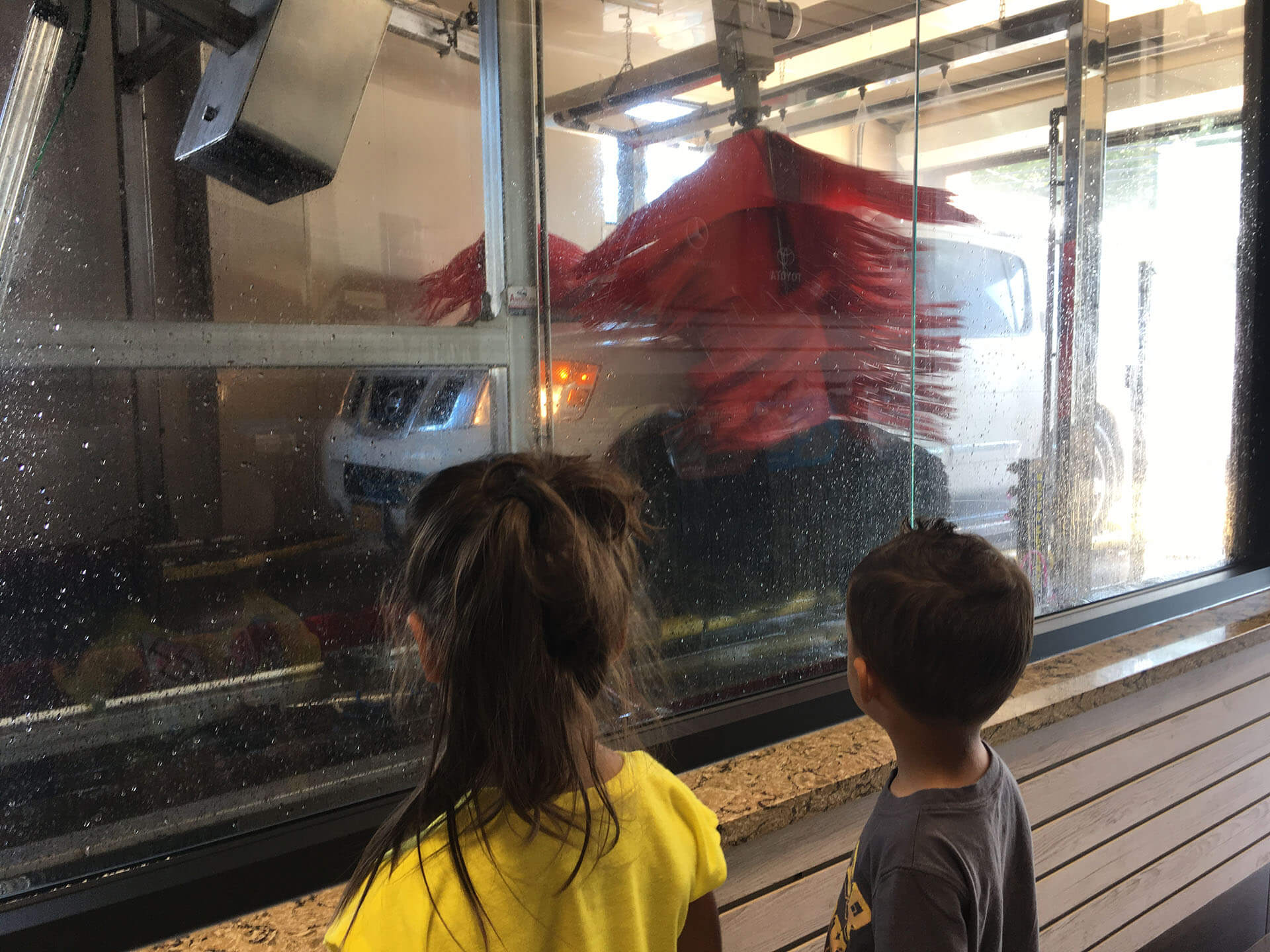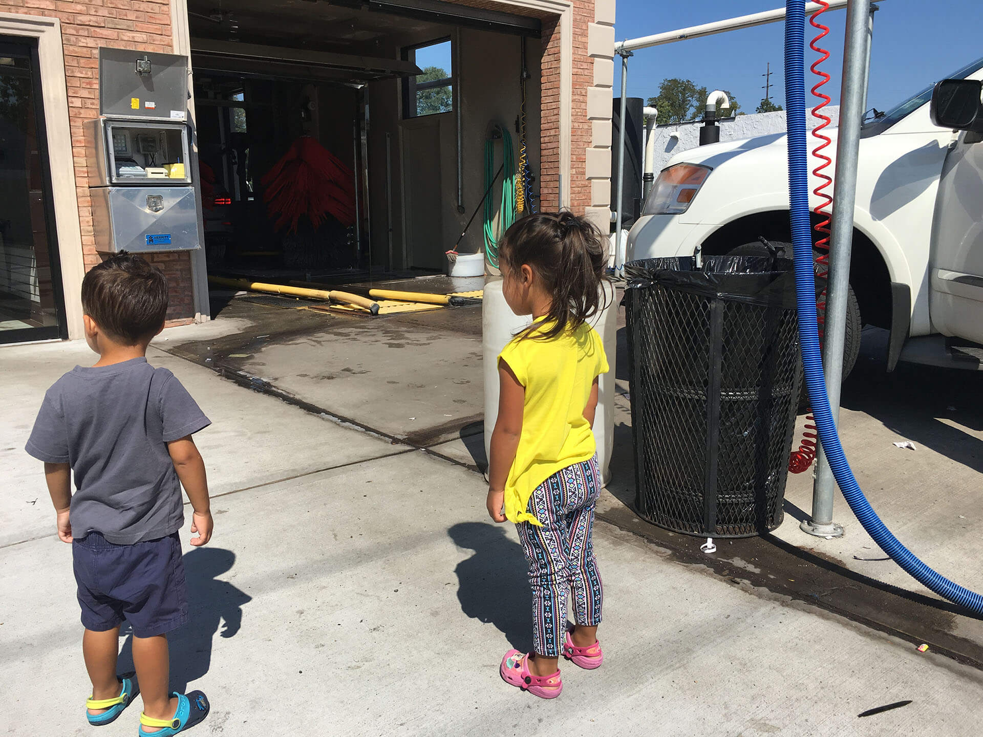 So mommy had some chores to do around the house before we went out to enjoy the day with you both. Instead of laying around the house I realized that the truck was a little dirty. I know I have never taken you guys to the car wash and this would be a great opportunity for a little adventure. So I strapped you guys into your seats and off we went to the Car Wash.
