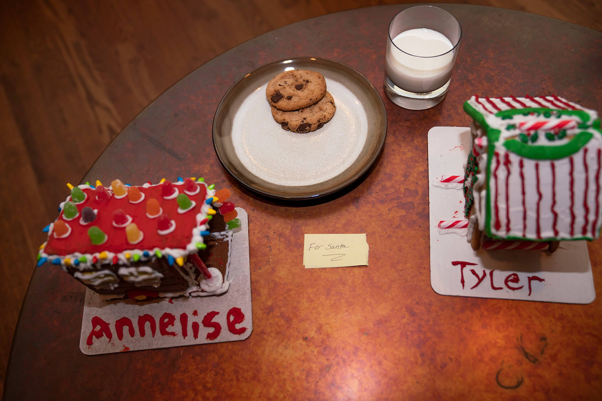 First things first…lets get into our pajamas. Step two, lets prepare the table for Santa’s Arrival by the Christmas tree. Step three, place the cookies and milk next to a comfortable chair for Santa to sit in so he enjoy his snack before he continues on his journey.