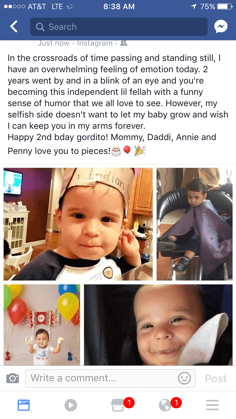 Mommy posted something very sweet on Facebook about you and wanted to share with you because who knows if facebook will be around in the future. She wrote: “On the crossroads of time passing and standing still, I have an overwhelming feeling of emotion today. Two years went by and in a blink of an eye you’re becoming this independent lil fellah with a funny sense of humor that we al love to see. However. my selfish side doesn’t want to let my baby grow and wish I can keep you in my arms forever. Happy 2nd Birthday gordito! Mommy, Daddi, Annie and Penny love you to pieces!”