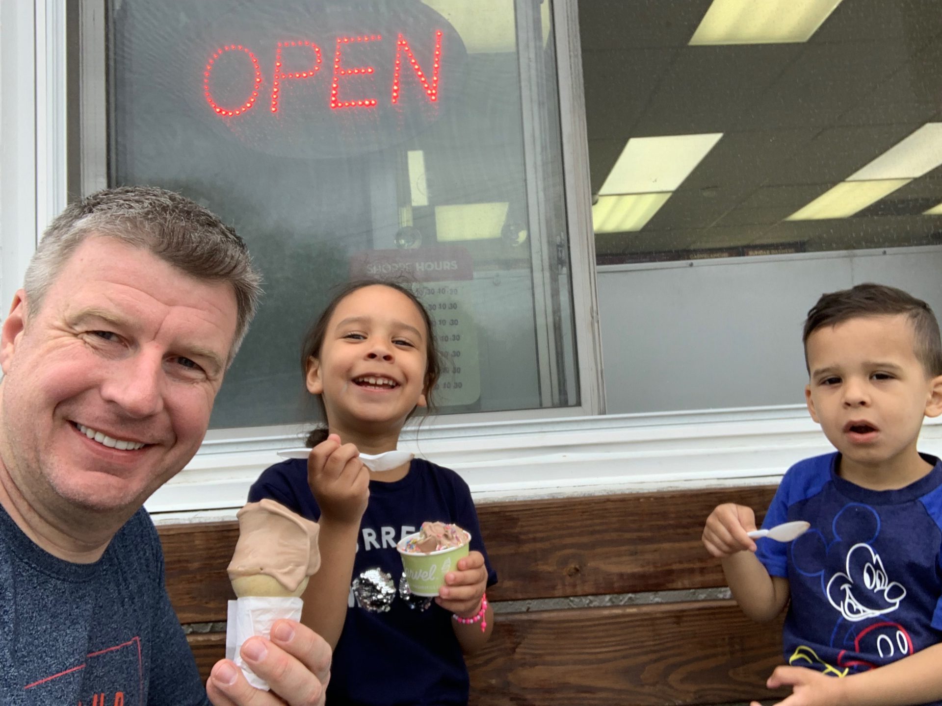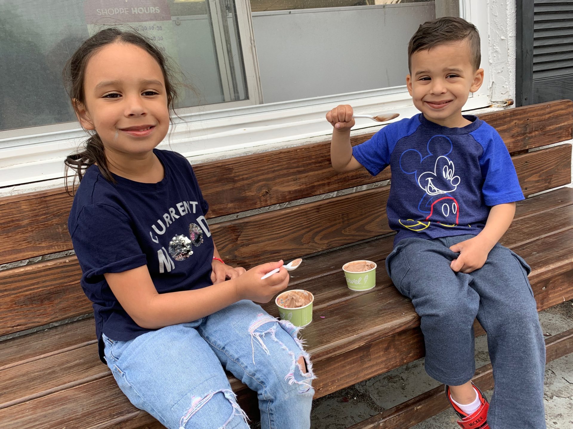 So daddy came home earlier today from work, and we went to the park to ride our scooters. After some scooter fun time, daddy took you guys for your favorite…Carvel soft ice cream.