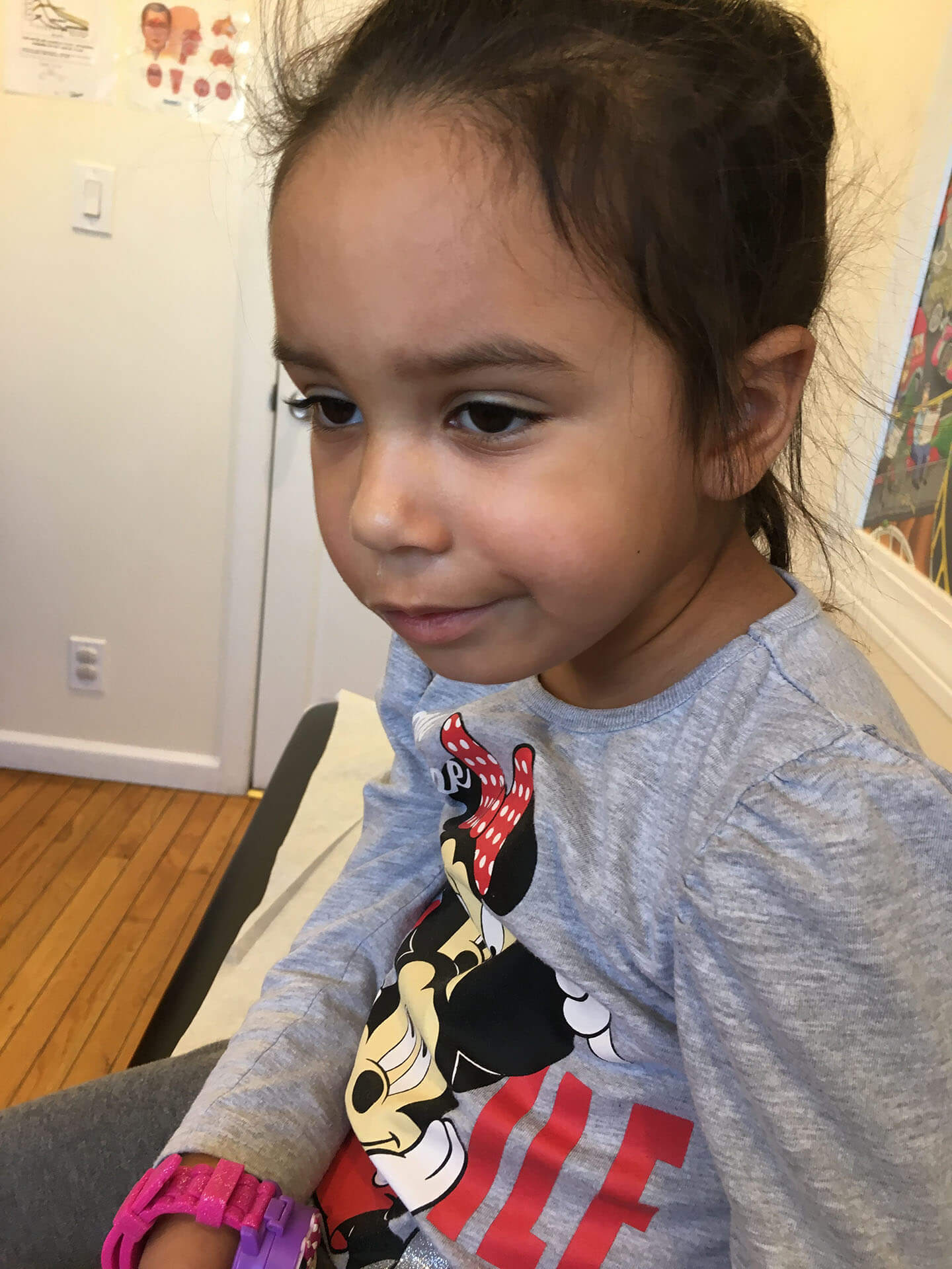 Diagnosis: Left ear infection and possible strep-throat. You were given antibiotics and sent home. After one week we had our fun little-girl back.