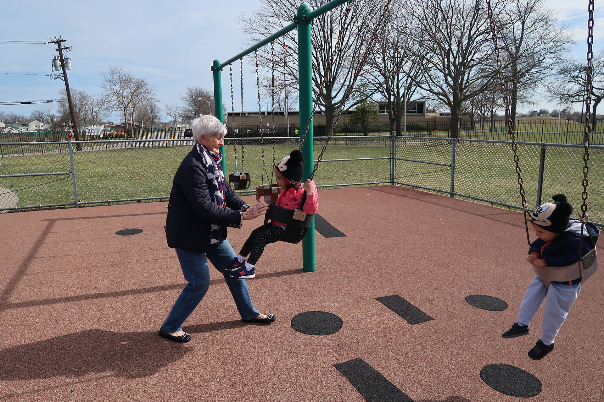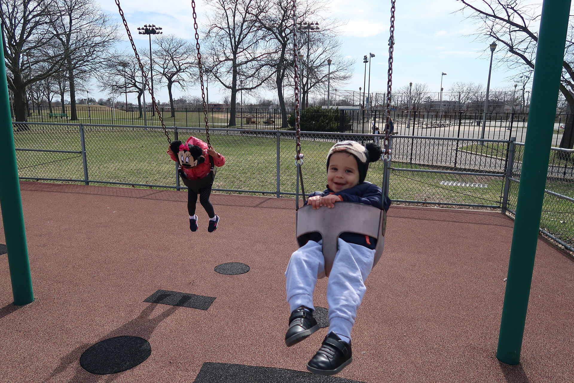 You kids have to be kept busy everyday otherwise you guys go crazy. Today we took you to the park. One of your favorite places where you can run around free on obstacle courses and have a great time. Babcia came out to swing her baby grandchildren on the swings.