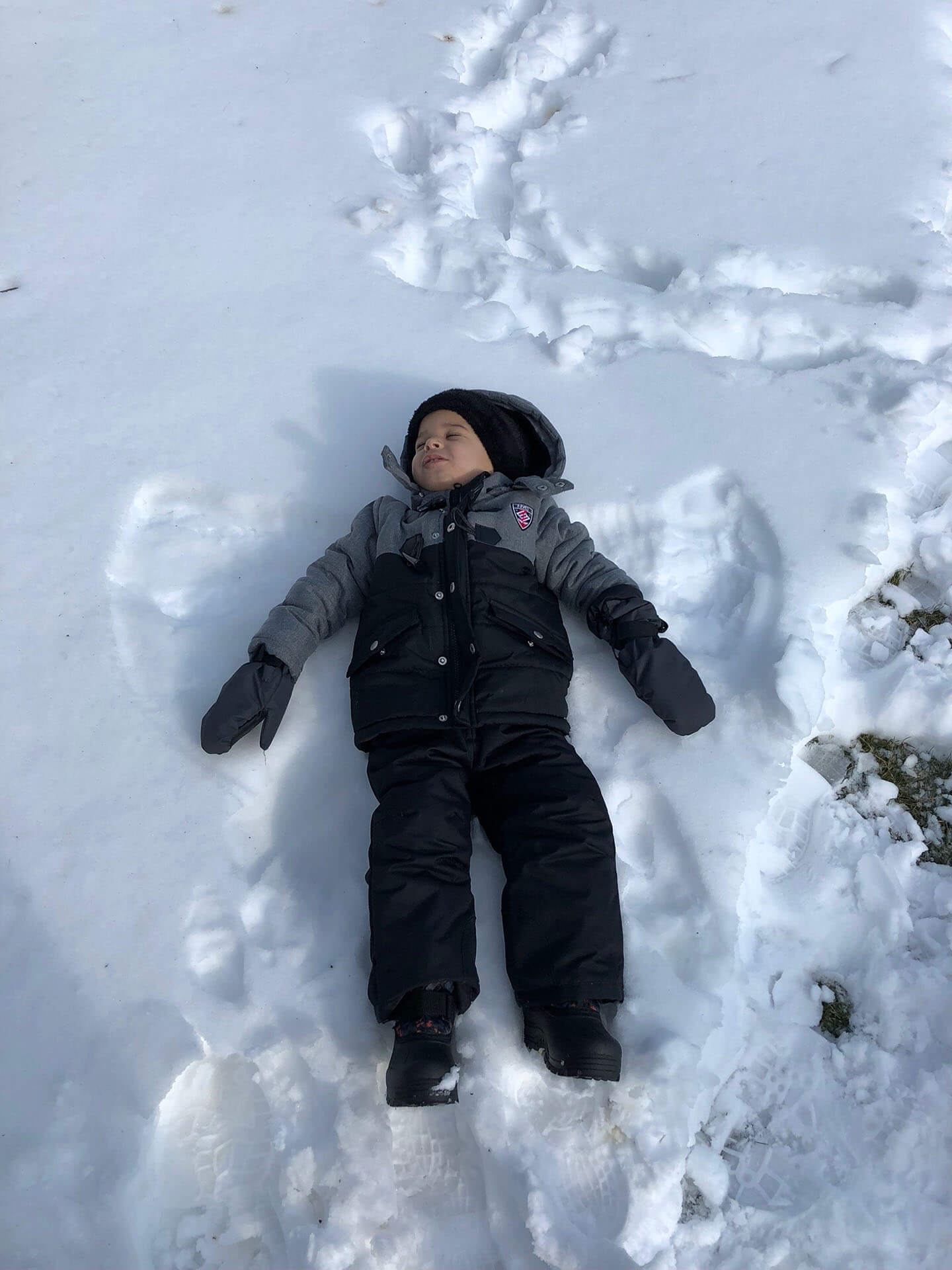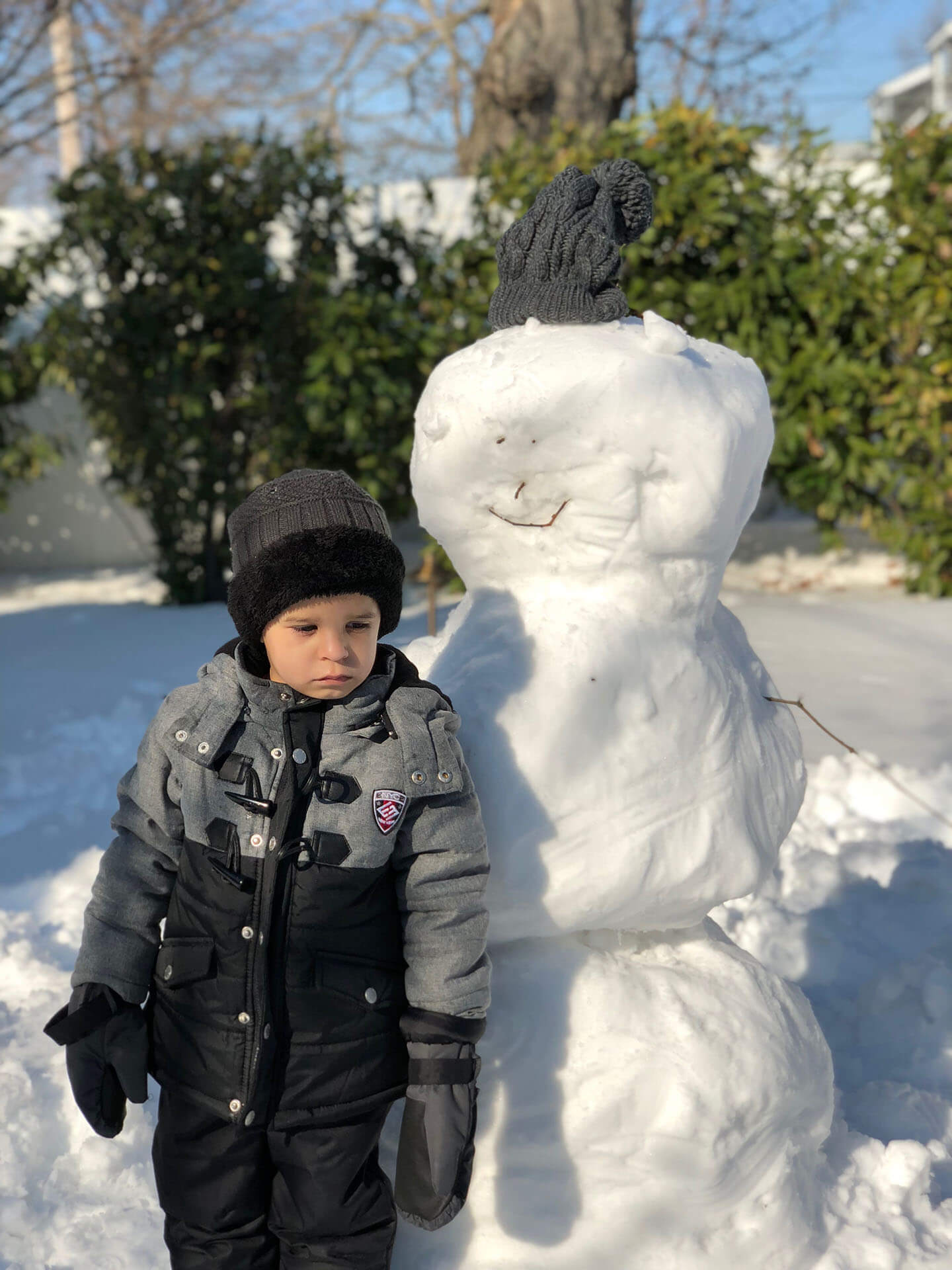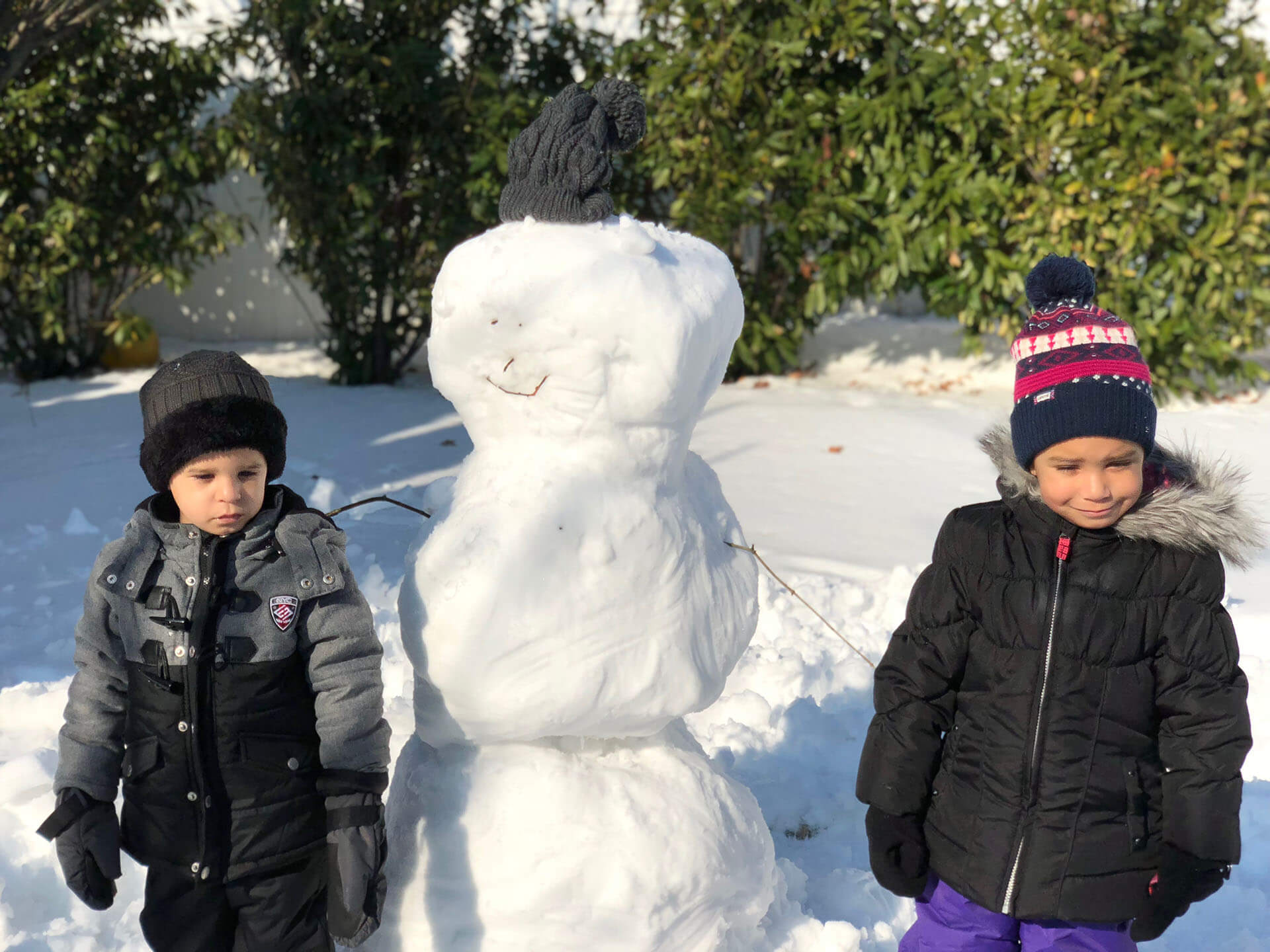 As mommy and I are at work Paula text us these photos of you and we were surprised at the size of the snowman you guys built. This snowman is bigger than the both of you. Daddy has to buy some coal and a carrot so you two can create a face . Those tiny sticks look a little sad. Don’t worry the next snow storm daddy will have the coal ready for you.