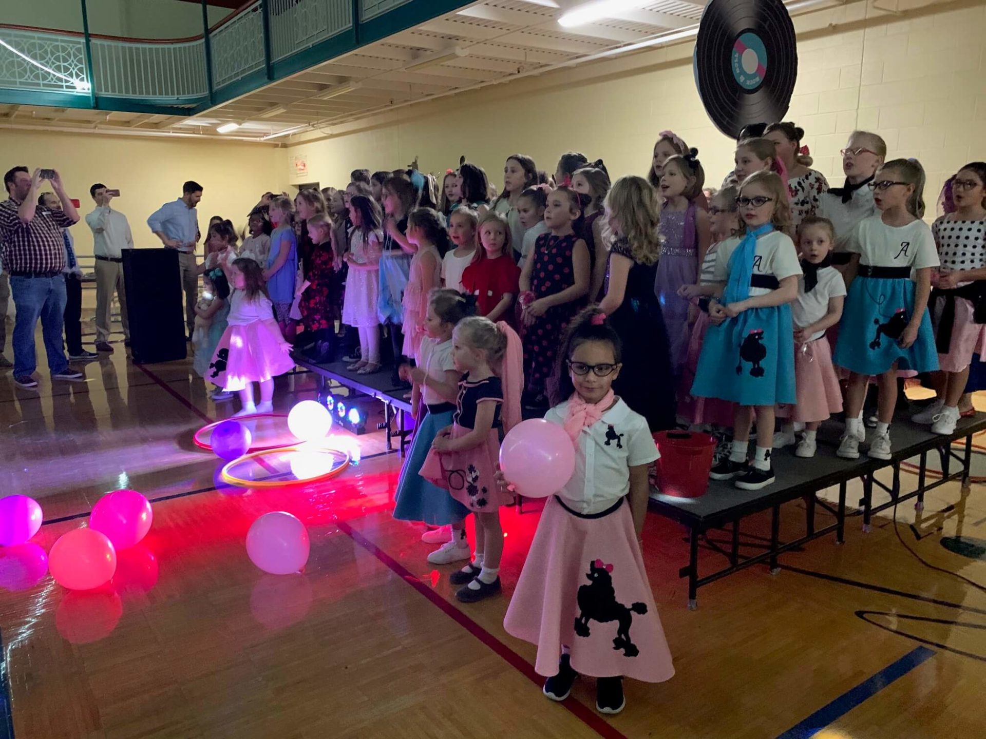 What I liked about yours is that it was themed as a “Sock-Pop” dance. Sock-Pops was a popular thing in the 1950s where a lot of pop music was played. Kids wore jeans, with the pants cuff high where the socks were exposed. Girls wore long dresses that they can twirl in. The popular music then was DOO-WOP.