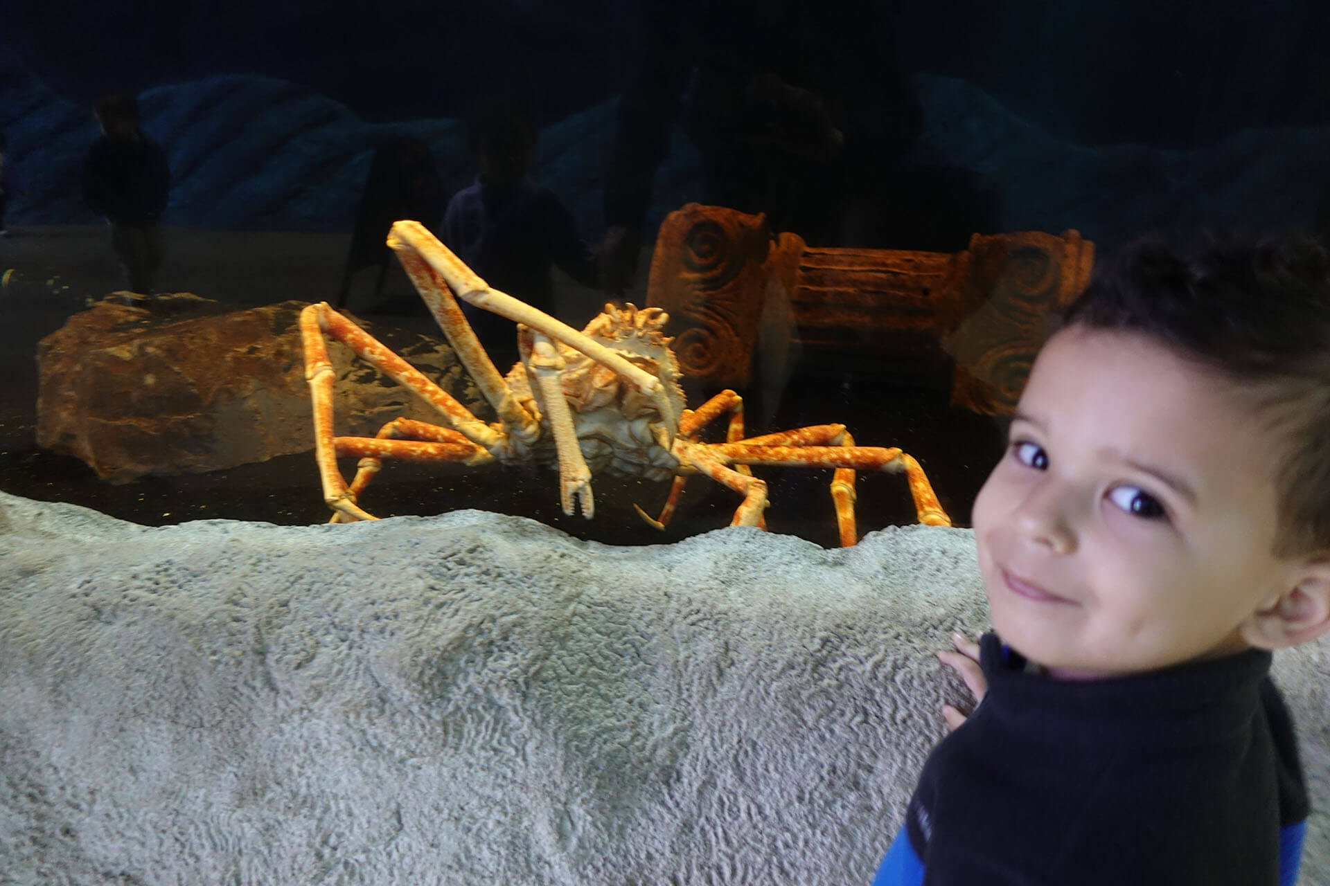 Daddy really enjoyed your natural curiosity. The best part was that every display we approached your interest grew more and more. Like with this picture with you Tyler and the King Crab. I was ready to snap a photograph of you observing the king crab. But you turned at the exact moment when I pressed the shutter button and look at yourself for moment. That expression just boasts enthusiasm.