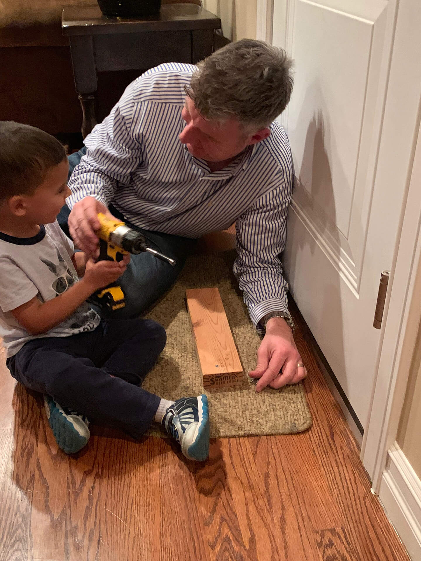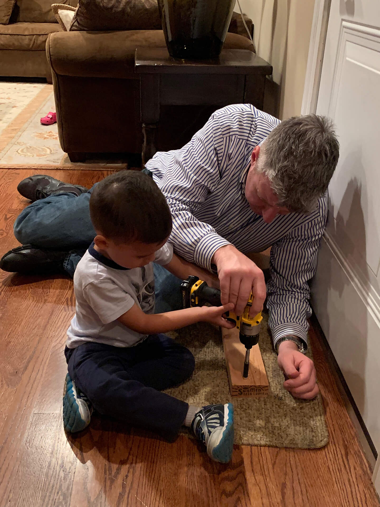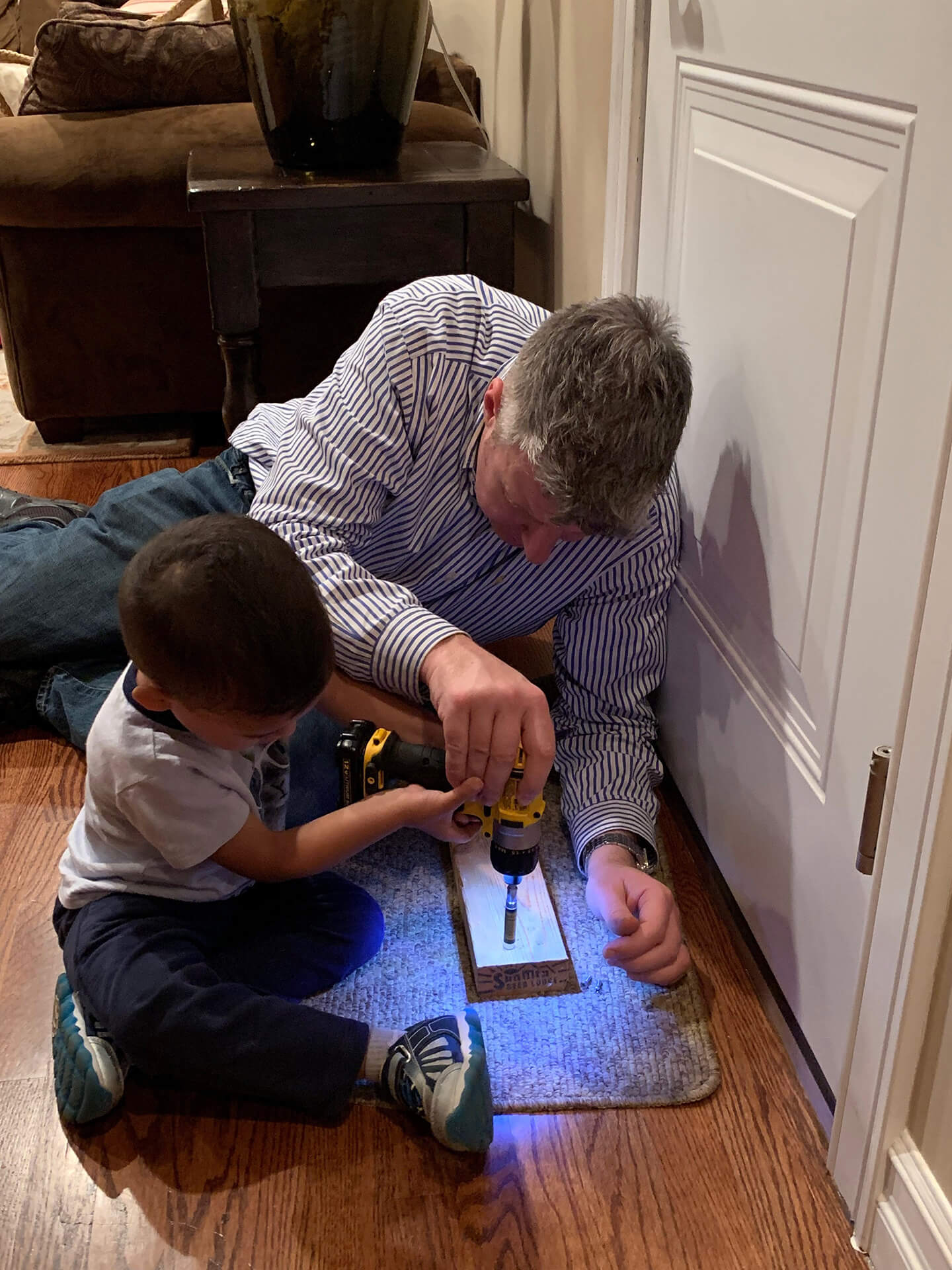 My little buddy is growing up so fast. Daddy always is running around the house adjusting something or fixing something. My little Tyler mentally acts older than he really thinks he is. He wanted to examine the screw gun, see what turns it on and pull the trigger to see the chuck rotate. Once I demonstrated how it works I let him pull the trigger on the screw gun a few times.