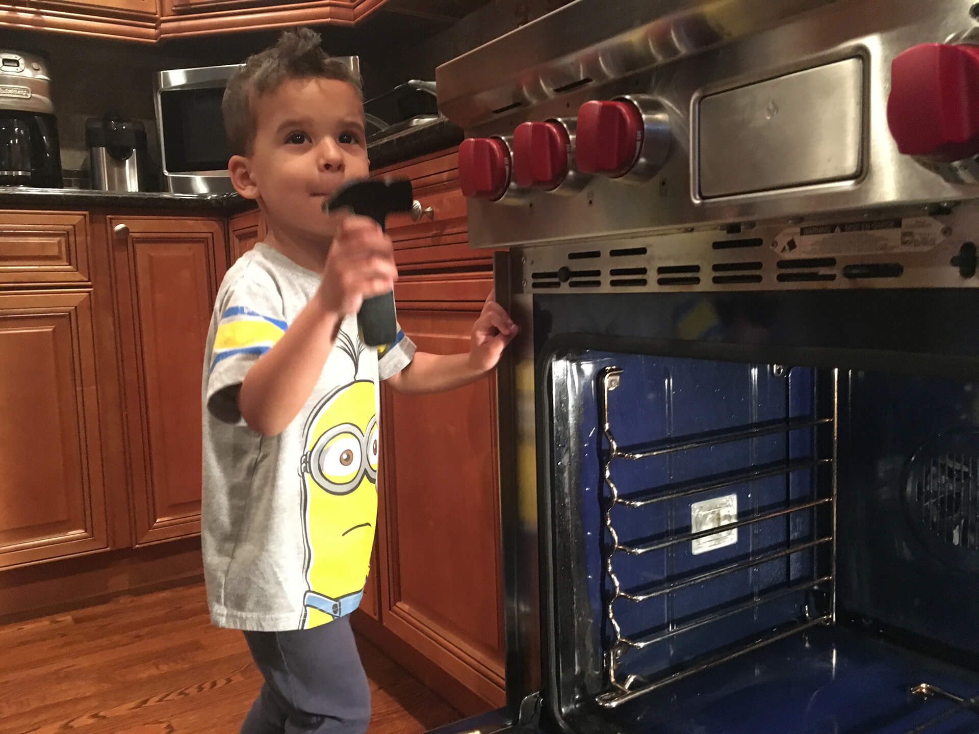 So it was time to give the oven a cleaning. With this big boy…we have to remove racks and rack mounts otherwise they will discolor. So daddy had to get his tools to remove everything. One of my proudest moments was to hear my little boy yell out “wait daddy! I will get my tools and help.” The I see Tyler run to the often with his little hammer to help daddy. It was one of those moments that really makes me appreciate being a dad.
