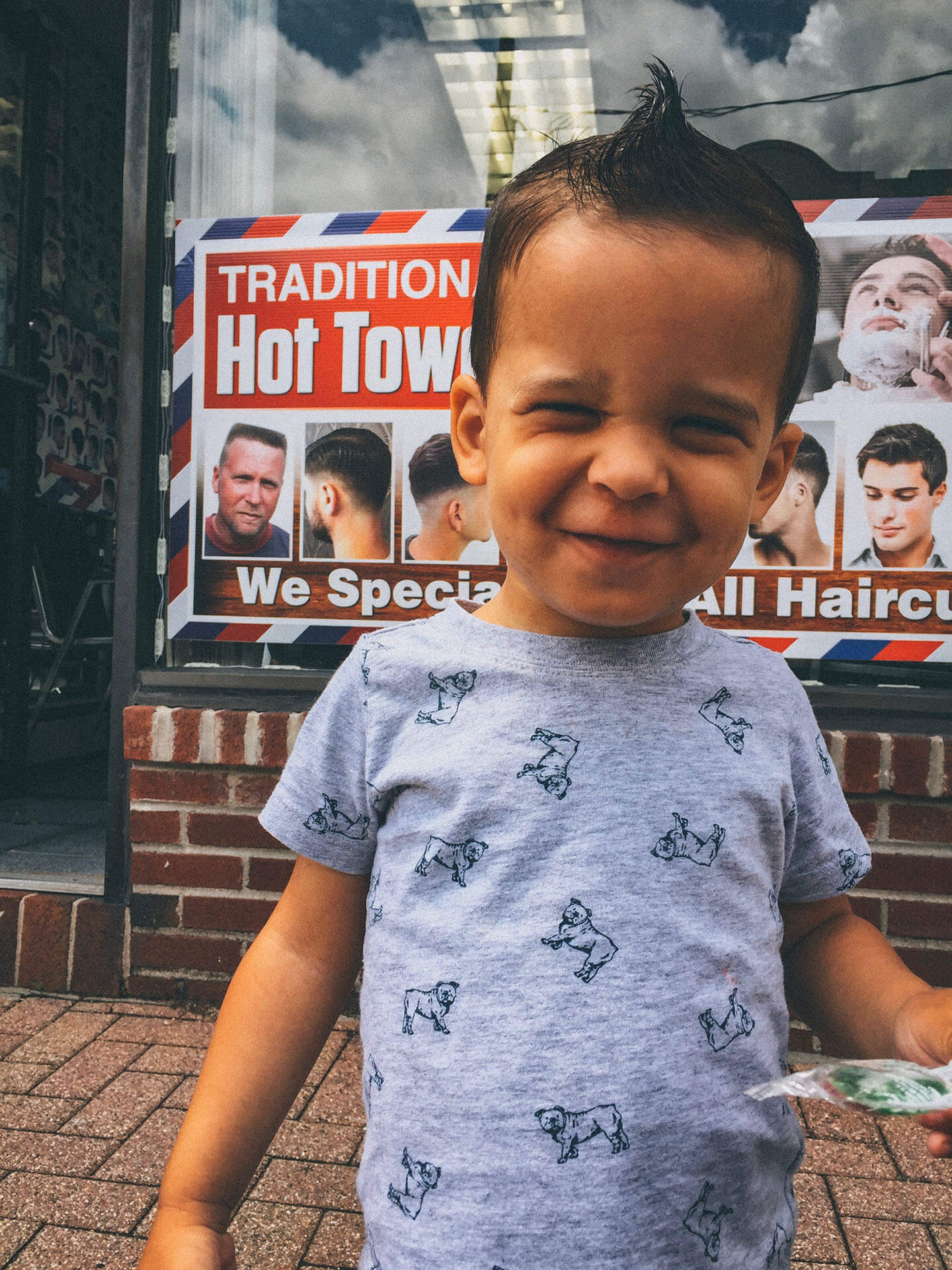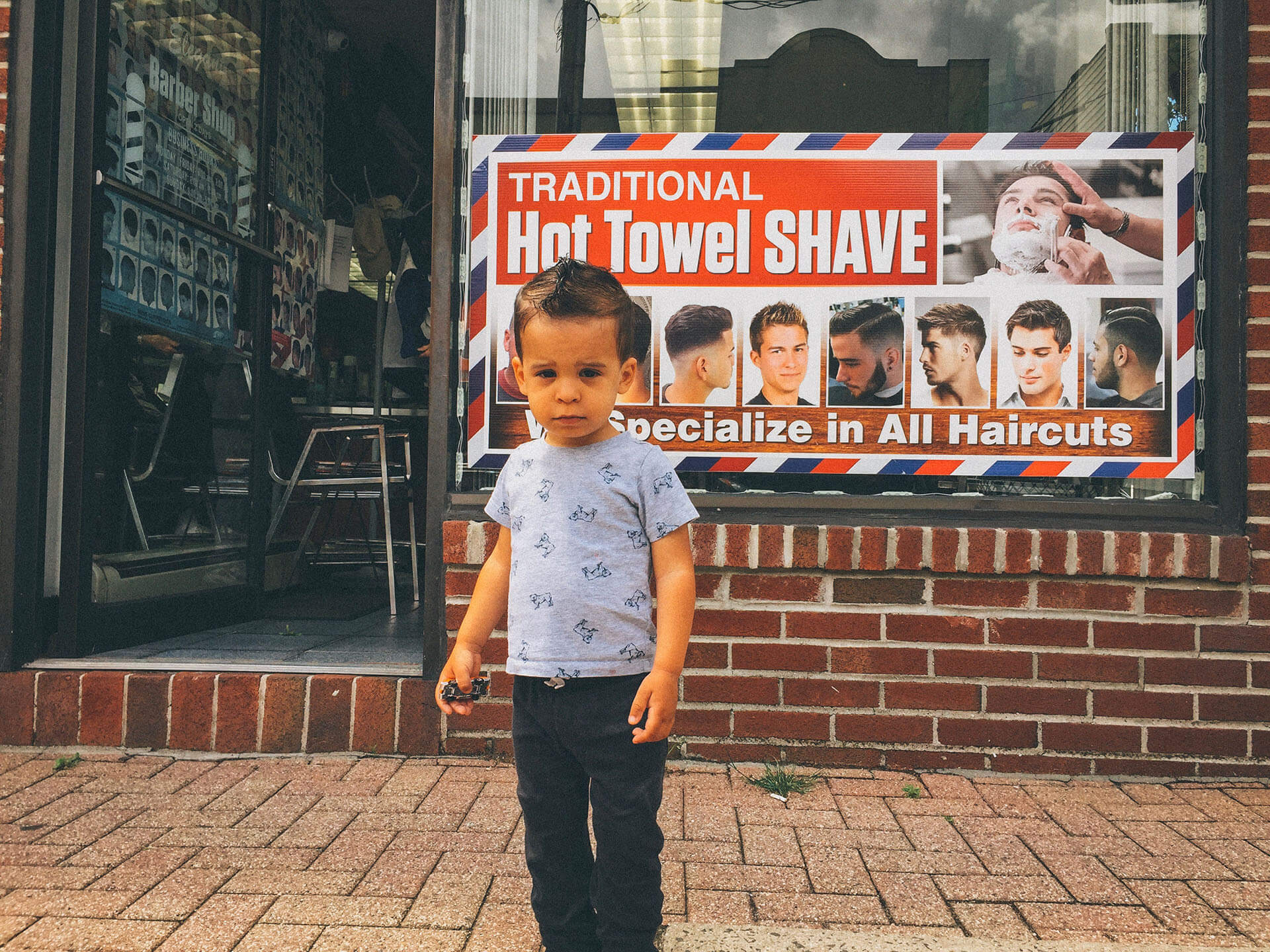 Its been a few weeks since your last haircut. You used to go to daddy’s hair stylist (Lori) in Queens but since daddy’s schedule at work changed we can’t go there anymore. Lori only works on Saturdays. Dad found a new place in the city so mommy has a choice of either going to Queens or find someone nearby. And that’s exactly what mommy did. She took you to a local neighborhood location named Jacobs Barber Shop in Bellmore.
