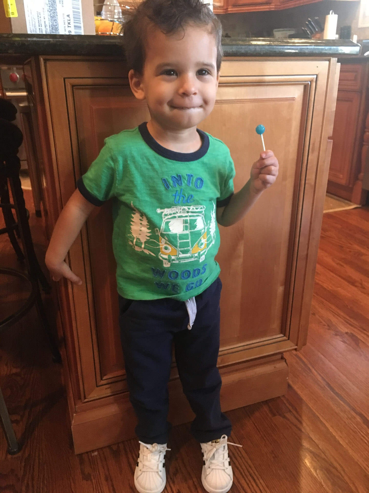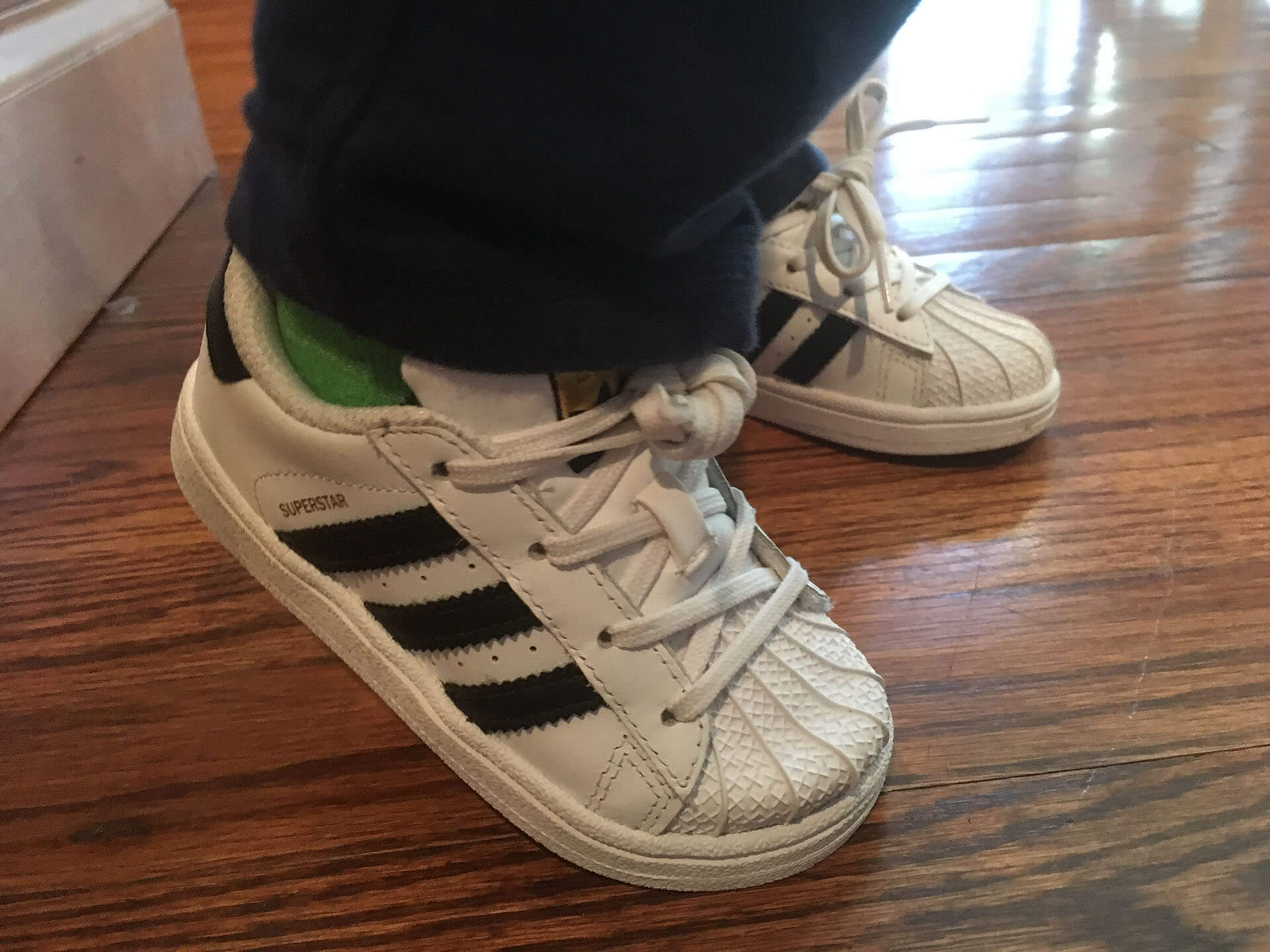 You got a brand new pair of Adidas sneakers. I bought these for Anne but she never wanted to wear them. But they look great on you Ty. The one thing I love about you Tyler is that you appreciate everything we give you. Your enthusiastic about the the things you have.